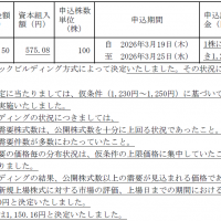 ビタブリッドジャパンに対する事前評価は微妙なところで、ブックビルディング期間は3/17(火)から3/24(火)となってます。 » この記事の続きを読む