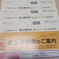 今回頂いた優待は昨年末に家族で1,000株×2と100株×1をクロスした分で、計36,000円分の優待食事券になります。