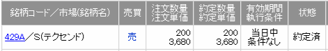 上場初日に売り逃したIPO当選分テクセンドフォトマスク200株を本日売却しました!