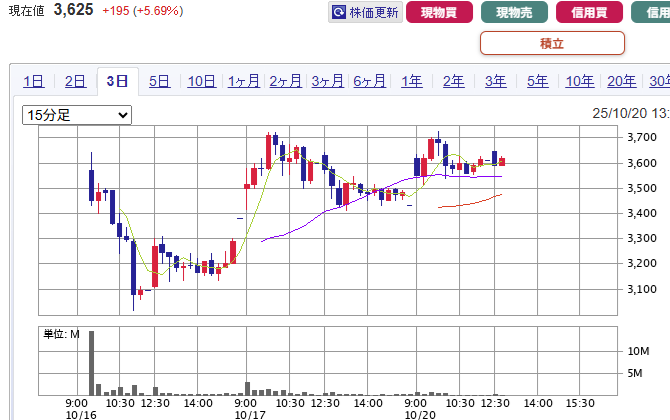 (@3,680円-3,000円)×1,000株=136,000円-5,886円(手数料)=130,114円の利益となりました。