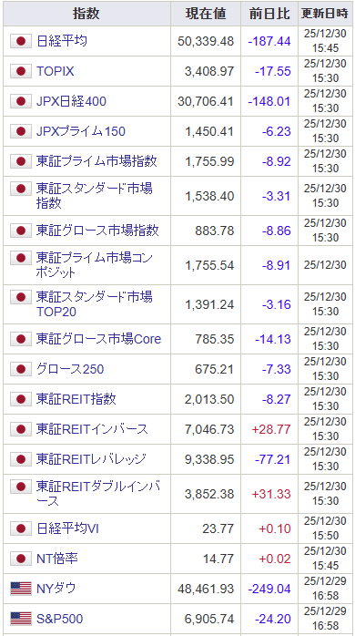2025大納会の各指数