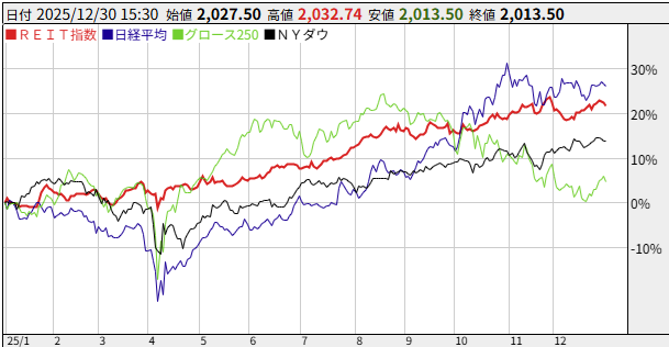 米株や日経平均は昨年も最高値を更新しており、リートも4年ぶりに大きく反発して終えました。
