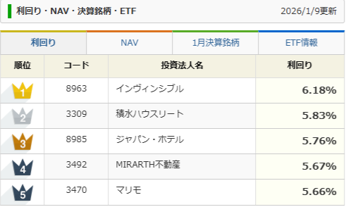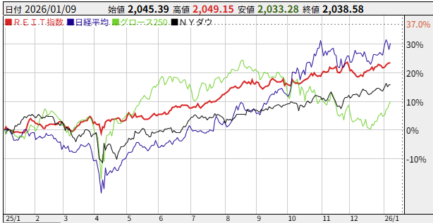 保有リート株は年初もシッカリ!リート指数は大台をキープ!
