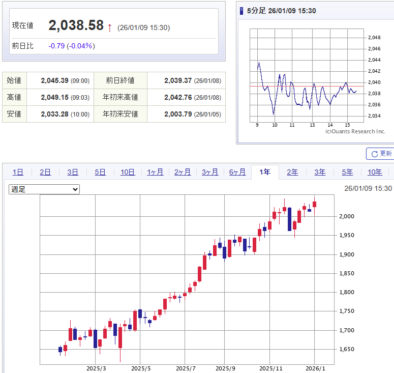 各指数ともシッカリで、年初はグロース250指数が5連騰と好調です。