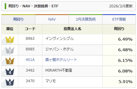 リート 利回り