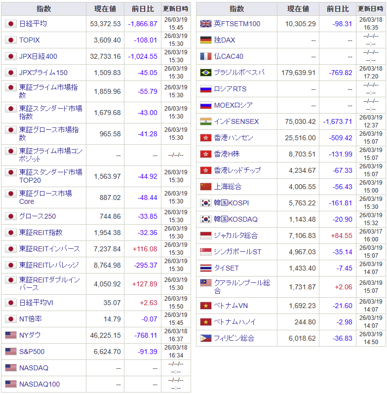 今月だけで既に4度目の暴落記録です…。まあ株価位置が高いので3/9を除けば下落率は3%台ですが、本日も下落幅が2,000円を越える場面があり、心理的なインパクトは大きいです。