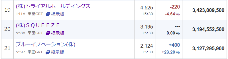 売買代金は東証グロース市場で20位、全市場では319位でした。