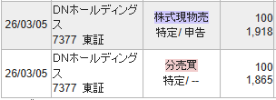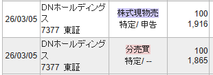 DNホールディングス(7377)の売却結果