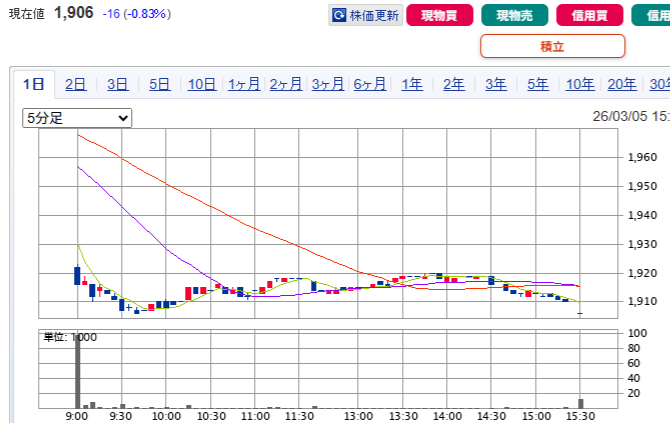 終値:1,906円(出来高=1,757枚)