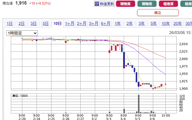 実施日:3/5(木)※SBI証券で家族含め計300株の当選