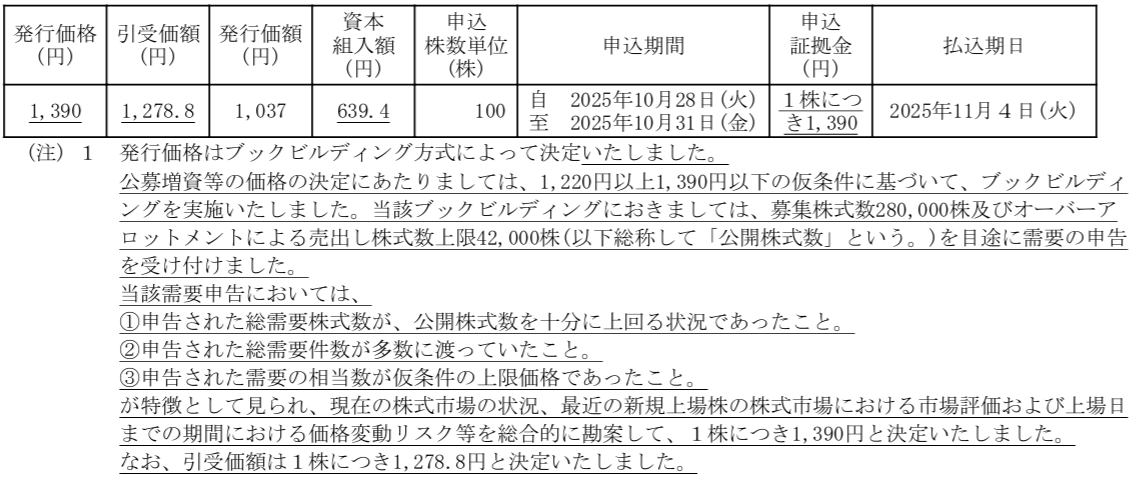 クラシコIPOの公開価格は、仮条件1,220円~1,390円の上限価格となる1,390円で決定しました。