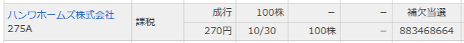 ハンワホームズIPOの公開価格は、仮条件250円~270円上限価格となる270円で決定しました。