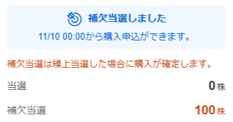 マネックス証券とJトラストグローバル証券は家族も補欠当選しています。極小IPOでこれほど補欠当選が多いとは…。