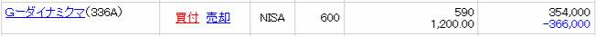 (@590円-1,200円)× 600株= ー366,000円-3,135円(手数料見込)=369,135円の損失を計上します。