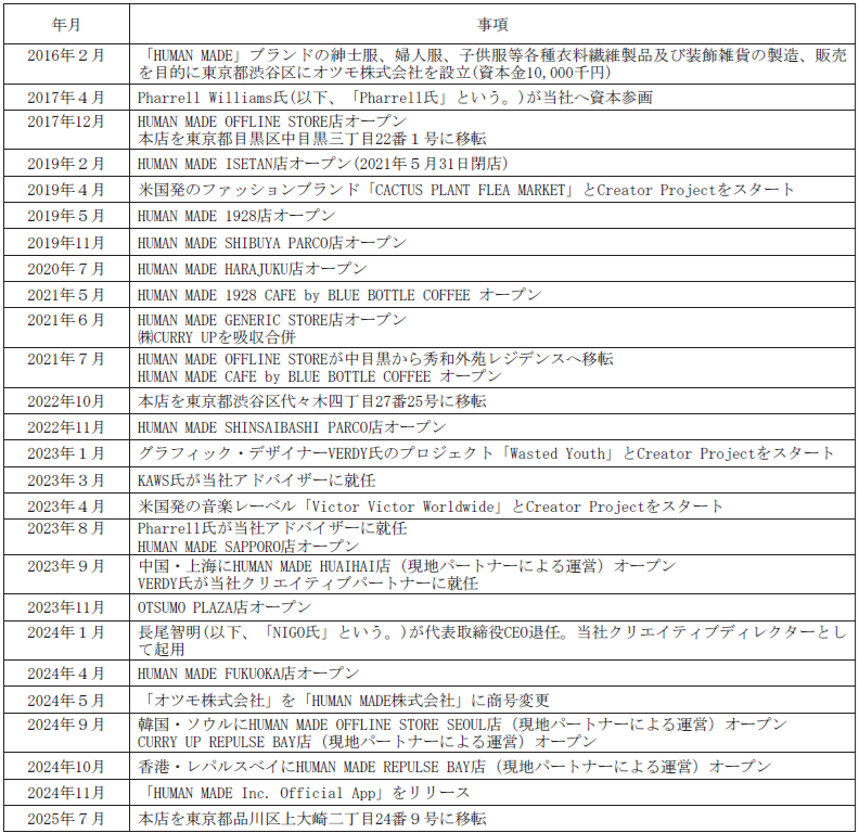 創業者は裏原系ファッションデザイナーの長尾智明(NIGO)氏で(現在はクリエイティブ・ディレクターに専念)、2024年に松沼礼氏がCEOとなり、株式会社オルツからHUMAN MADEに商号を変更しています。