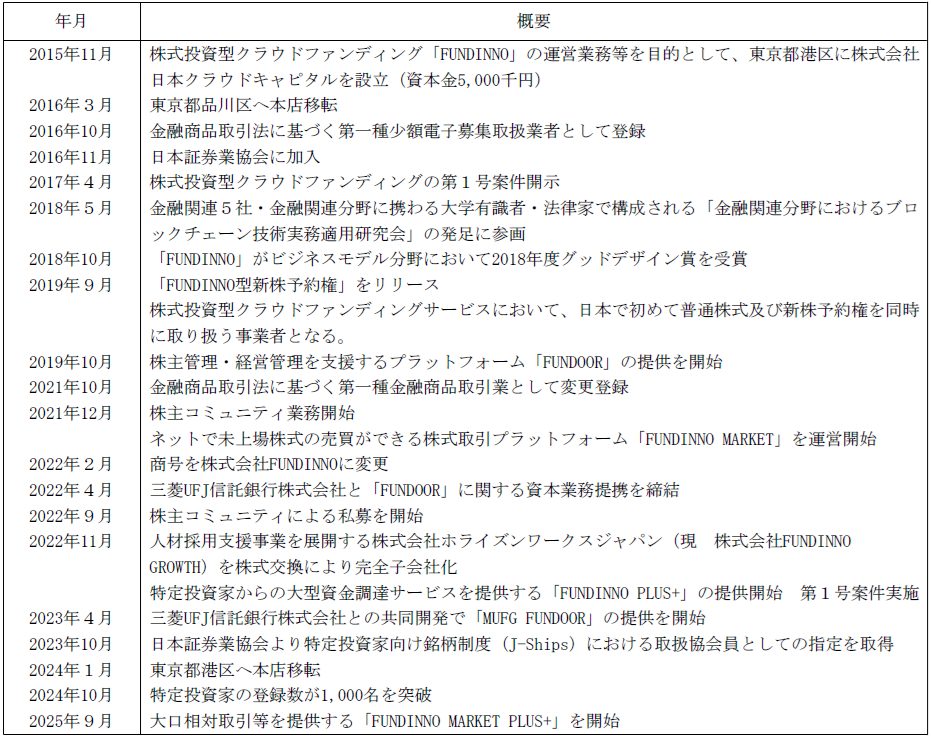 FUNDINNO(ファンディーノ)は、2015年の金融商品取引法改正による第一種少額電子募集取扱業務の認定に伴い、「未上場企業エクイティプラットフォーム事業」を営む会社として設立されました。