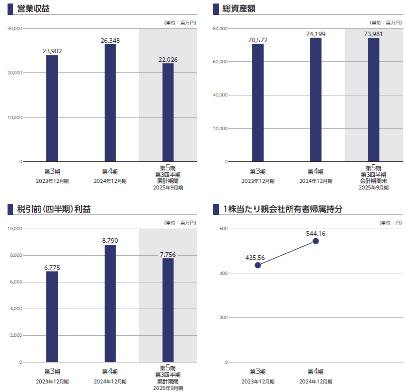 東証プライムの上場で業界最大手でもあることから機関投資家の参戦が期待できそうですが、圧倒的な利益率を考慮しても、同業他社と中間値(@1,585円)で比較しても妥当な水準にみえます。