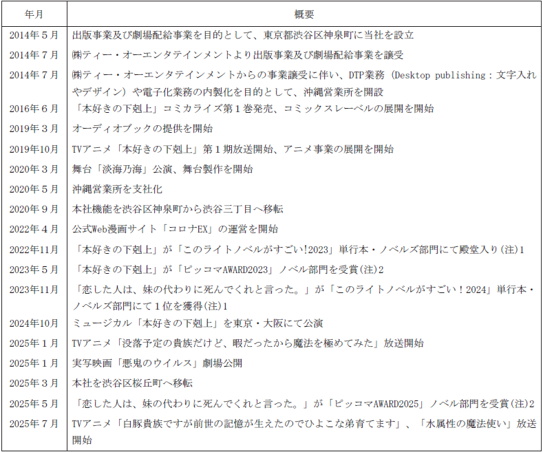TOブックスは、角川書店の出身で現代表の本田武市氏が2003年に設立した映像制作会社を起点としており、2014年にTOブックスを設立してコミック・オーディオブック・アニメ・部隊などへと事業領域を広げてきました。