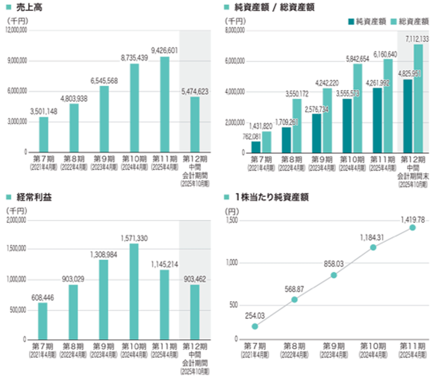 筆頭株主は同社役員等が過半数を有する企業で約57.97%、第2位は代表取締役の本田武市氏で約28.99%、以下は新株予約券で第3位が専務取締役の柴田維氏で約7.25%、第4位は取締役の小山倫良しで約1.74%、第5位が取締役の鳥海祐喜氏で約1.30%となっています。