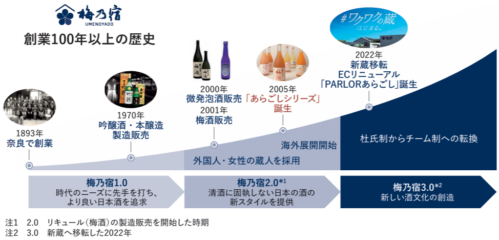梅乃宿酒造は1893年から奈良で日本酒の製造販売を行ってきた老舗で、1950年に梅乃宿酒造として法人化しています。
