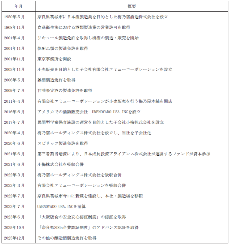 梅乃宿酒造の沿革