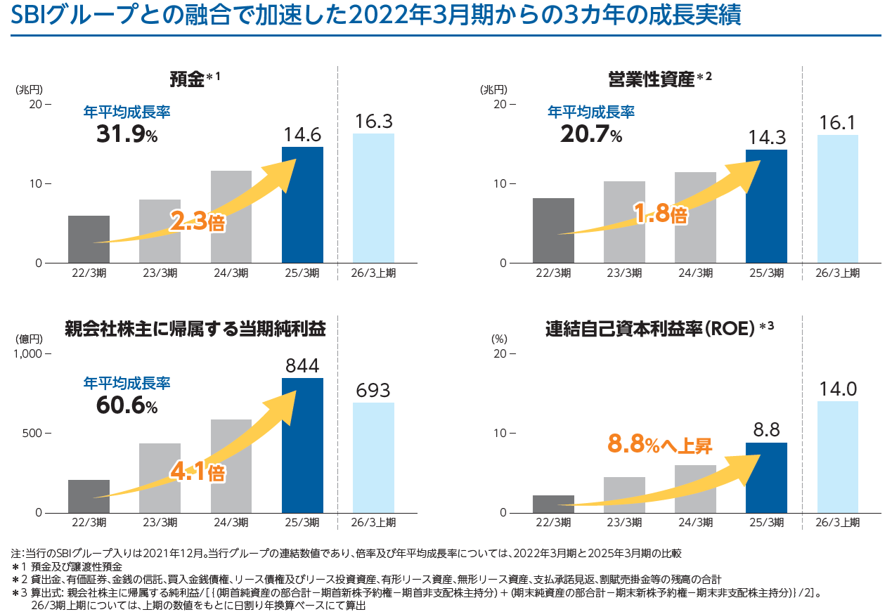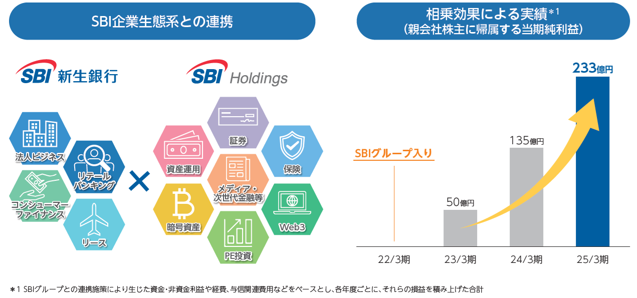 SBI新生銀行は、2021年のSBIグループ入り後、SBIグループとの連携強化による相乗効果で急速に業績を拡大させています。