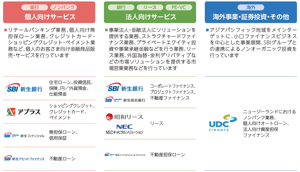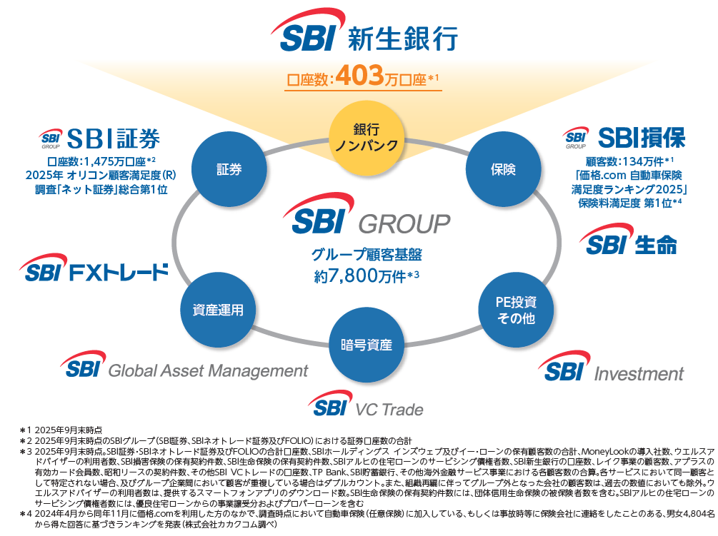 SBI新生銀行はSBIグループの連結子会社であり、SBIグループの中核銀行として総合金融サービスを提供しています。