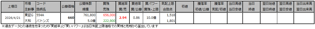 今後も初値持越しのIPOが出たらデータを追加していきます。