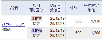 (@1,260円-1,220円)×1,400株=56,000円-15,818円(手数料合算)=40,182円の利益となりました。
