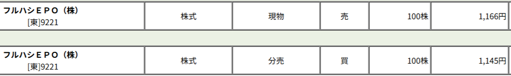 個人的にはフルハシEPOとアイスコの2銘柄に参加して、家族含め100株と200株の当選でした。