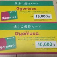 今回の株主優待は、昨年の10月末に私が2,000株、妻が1,000株をクロスした分で、計25,000円分のGyomuca(ギョムカ)カードです。