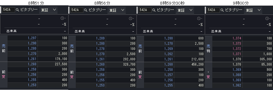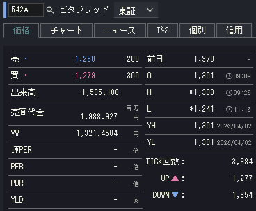ビタブリッドジャパンの気配推移