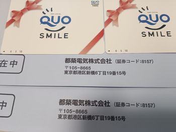 今回の株主優待は昨年の9月末に夫婦で100株ずつクロスした分で、2,000円分のクオカードです。